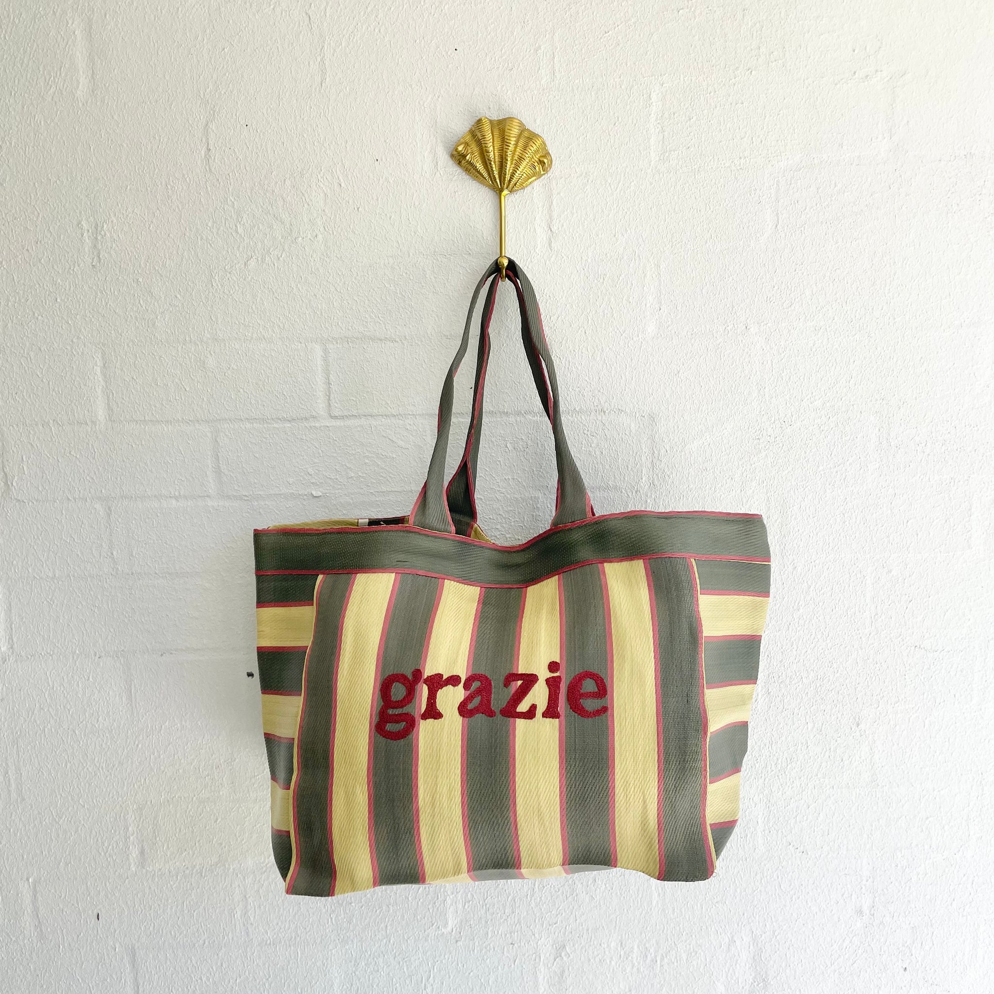 Meet the Grazie Recycled Large Tote — where sustainable style meets everyday utility. Crafted from repurposed plastic bags in India, this roomy tote offers plenty of space for your essentials (and a little extra). Whether you're heading to the farmers’ market, packing up for a beach day, or just out and about around town. The durable fabric handles the hustle of daily life, while the generous size means it works as your go-to bag for errands, travel, or relaxed chic weekends.